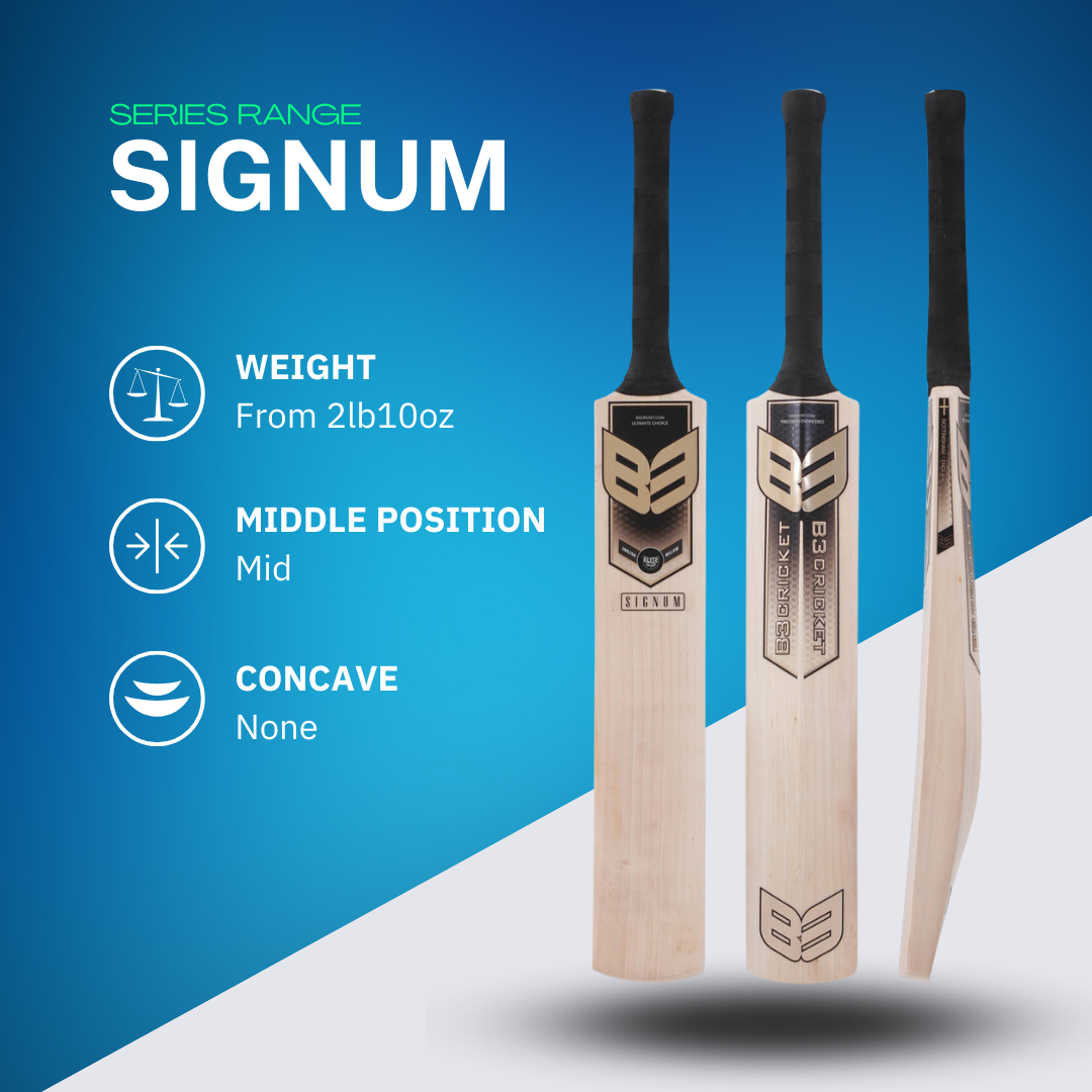 Discover the Signum, the latest powerhouse in our Series Range. A bat crafted with precision to meet the demands of elite players. Taking direct inspiration from our internationally renowned pro cricketers, the Signum delivers a meaty, full profile cricket bat designed for serious performance at the highest level.